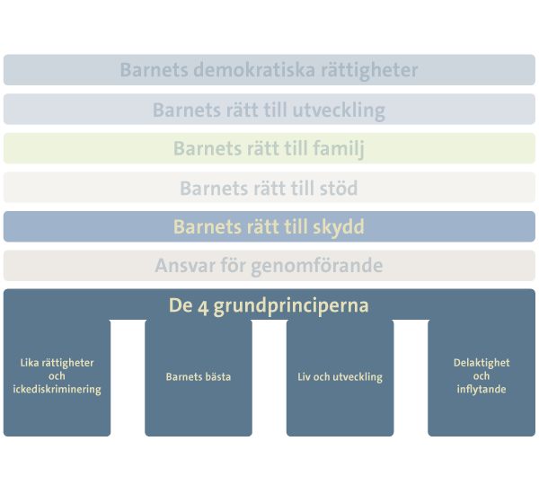 De fyra grundprinciperna utgör konventionens grundläggande värderingar och barnsyn.